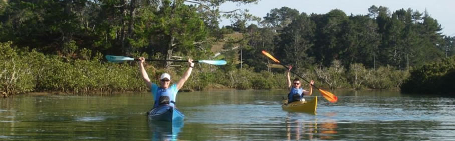 The kayak trip from the Puhoi Historic Village to the Wenderholm Regional Park is 8km of flat ( no rapids or waterfalls! ) tidal ( always going with you ) water.